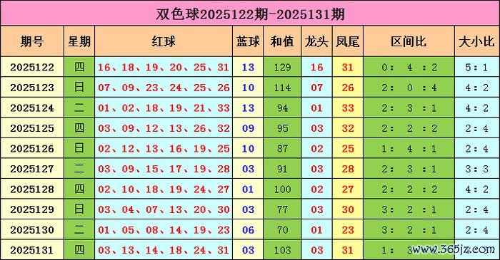 双色球上期开奖号码总结:红球03 13 14 18 24 31;蓝球03,红球号码大小比为3:3,三区比为1:3:2。蓝球开出小奇数03。